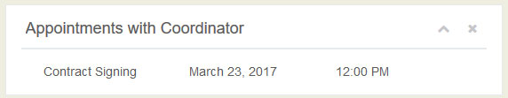If there are scheduled appointments with the coordinator they will appear in this section. These are important appointments that should be kept to ensure that your event goes as smoothly as possible.