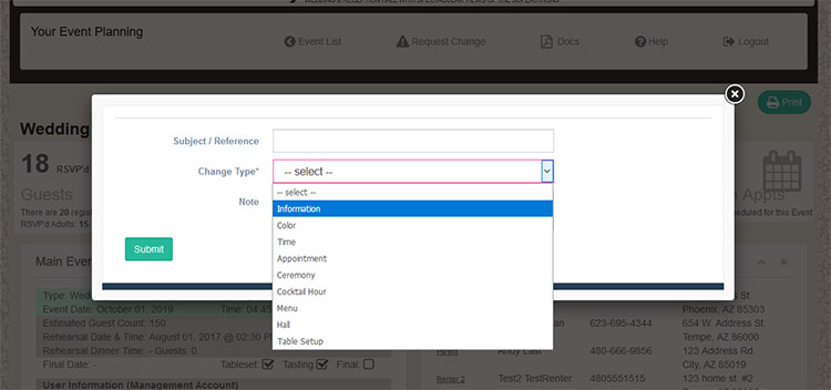 To ensure no one is left out of your special day, please maintain your Guests' Type, RSVPs, Seating and Meal Options plus your "Vendors List" to the best of your knowledge.
